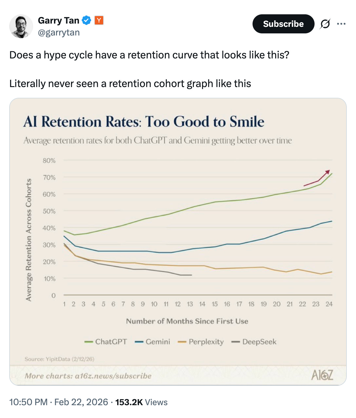(3) ChatGPT’s retention curve isn’t as unprecedented as Garry Tan thinks.