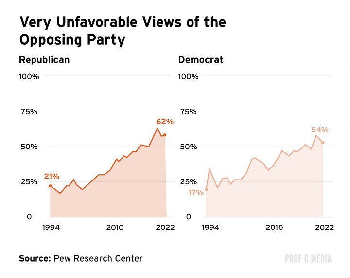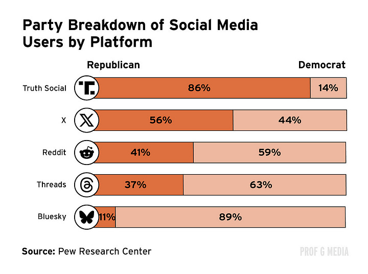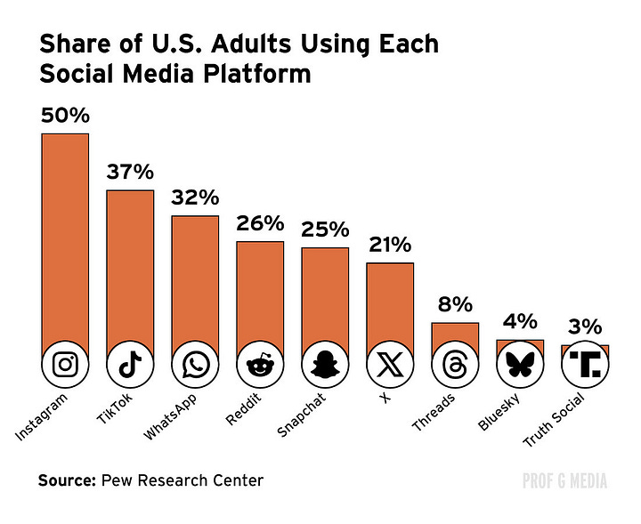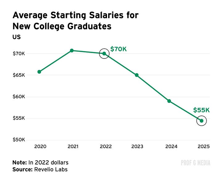 Scott Galloway (serial entrepreneur and NYU marketing professor) is a great bridge between the last category (independent media) and the next category (covering prediction markets and issues facing young people in America). He owns his own media business and writes about issues facing young people, including the consequences of AI/tech, media fragmentation, and the rise of young founders.