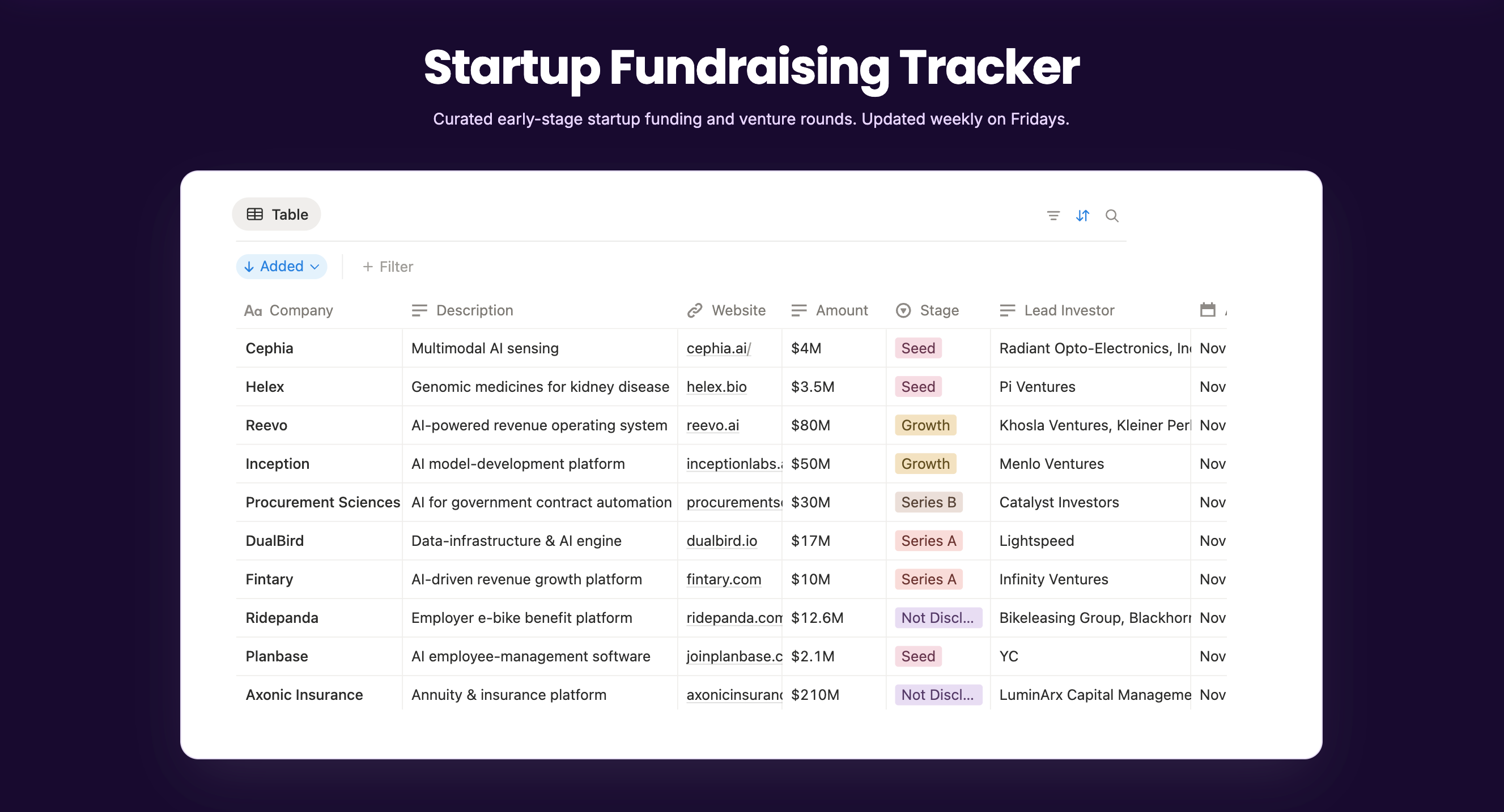 In addition, we have added a Startup Fundraising Tracker to help keep tabs on top companies currently raising.